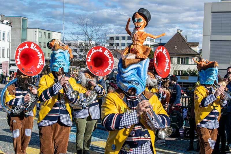 Montag und Mittwoch nachmittags findet jeweils ein Umzug ("Cortège") statt, an dem auch Wagen und Guggenmusiken teilnehmen.